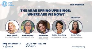 Orion Policy Institute hosted a live webinar on Thursday, December 12 between 10 AM – 11:30 AM (EST) titled, “The Arab Spring Uprisings: Where Are